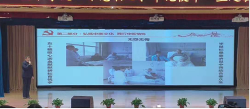 比赛中,王懿华同志紧扣“不忘初心、牢记使命”主题,紧密联系学院和医院的发展及实际工作,以“不忘中医初心 践行中医情怀”为命题,从不同角度、不同层面,在规定的10分钟内,用流畅的语言、精美的课件、鲜活的事例为现场观众送上了一堂精彩的党课。既有理论深度、又有实践意义,既风格突出、又形式新颖,以附院副院长王稳平、外科主任王卫力、返聘专家王兴淼和蜂疗疼痛科主任康平利等先进人物为例,用身边人讲身边事,用身边事教育身边人,以小见大,以近及远,以理服人,以情感人,最终荣获本次比赛一等奖。